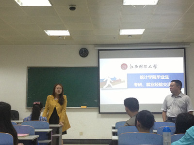 5月19日晚,统计学院分团委、学生会在5421教室精心组织了“毕业生归来话感受”系列活动之“考研、就业经验交流会”,特别邀请了学院中考研及就业方面具有代表性的几位学长学姐进行经验分享。统计学院党总支书记毛小兵、党总支副书记涂远武及大三年级100多名同学参与了本次交流会。