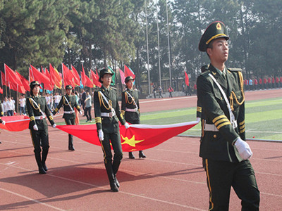 袅袅兮秋风,望众人兮气势长。2014年10月16日上午9时,备受全校师生瞩目的江西财经大学第三十四届校运会隆重开幕。出席本次开幕式有校长王乔等领导,全校部分老师和同学。随着雄壮激昂的运动员进行曲响起,校国旗队、彩旗队、各学院代表队以及教工代表队依次进入会场。他们恰同学少年,意气风发,昂首阔步,整齐划一地经过主席台接受领导的检阅。铿锵有力的步伐,高亢嘹亮的口号向我们彰显出江财人昂扬的精神风貌,展现出当代大学生特有的活力与朝气。
