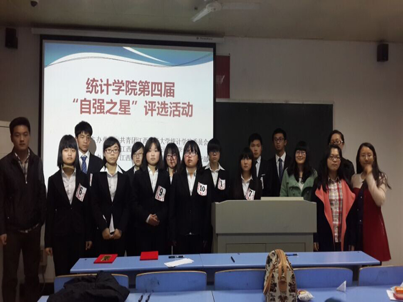 2015年3月27日下午17时,江西财经大学统计学院分团委学生会举办了以“自立、自信、自强”为主题的第四届“自强之星”评选活动,统计学院辅导员陈曦和统计学院分团委学生会部分常委部长出席了此次活动,并担当评委。