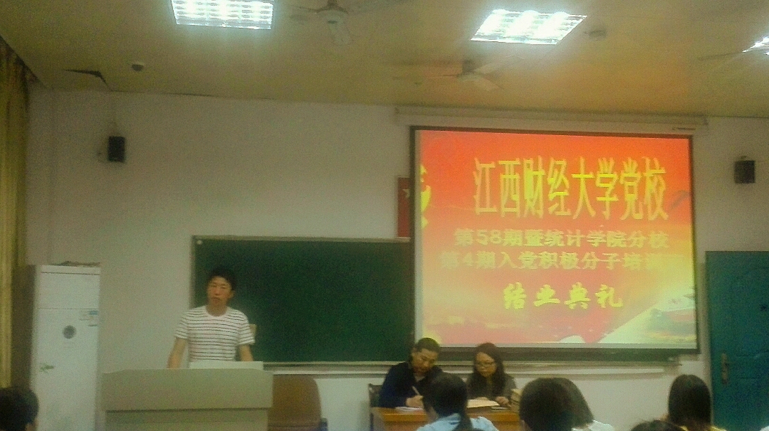 统计学院第四期入党积极分子结业典礼的圆满落幕,标志着我院新一期入党培训工作顺利结束。在这一个多月的党课培训中,入党积极分子们加强了对党的基本知识的了解,提高了思想政治觉悟和自身素质修养,坚定了争取早日入党为人民服务的决心。希望入党积极分子们能够坚定共产主义信仰,通过自身不懈努力,早日入党,为实现中华民族伟大复兴的“中国梦”奋斗!
