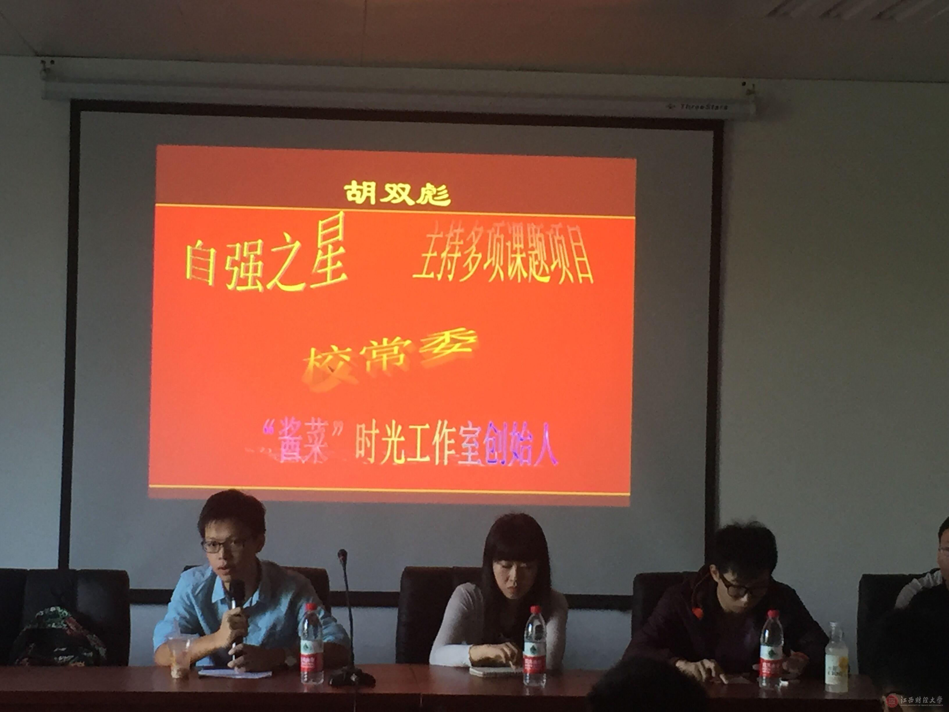 在老生分享完学习生活心得后,15级新生积极向前辈们提问,问题多种多样,气氛相当活跃。
