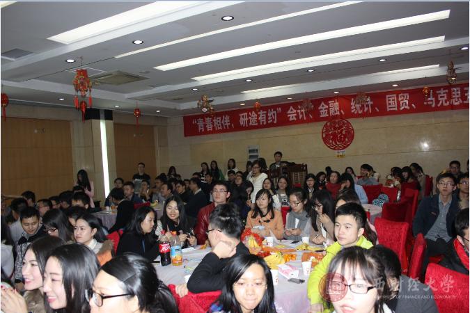 相思相见知何日?此时此夜难为情。11月12日晚6点半,在江西财经大学蛟桥园校区财大招待所进行这一场激情火爆的“青春相伴,研途有你”联谊晚会,联谊晚会由统计学院、会计学院、金融学院、国际经贸学院、马克思主义学院共五个学院的研究生组成。活动得到五大学院数百名研究生的积极响应,参加活动的人数远远超出了预期,现场摩拳擦掌、人山人海。
