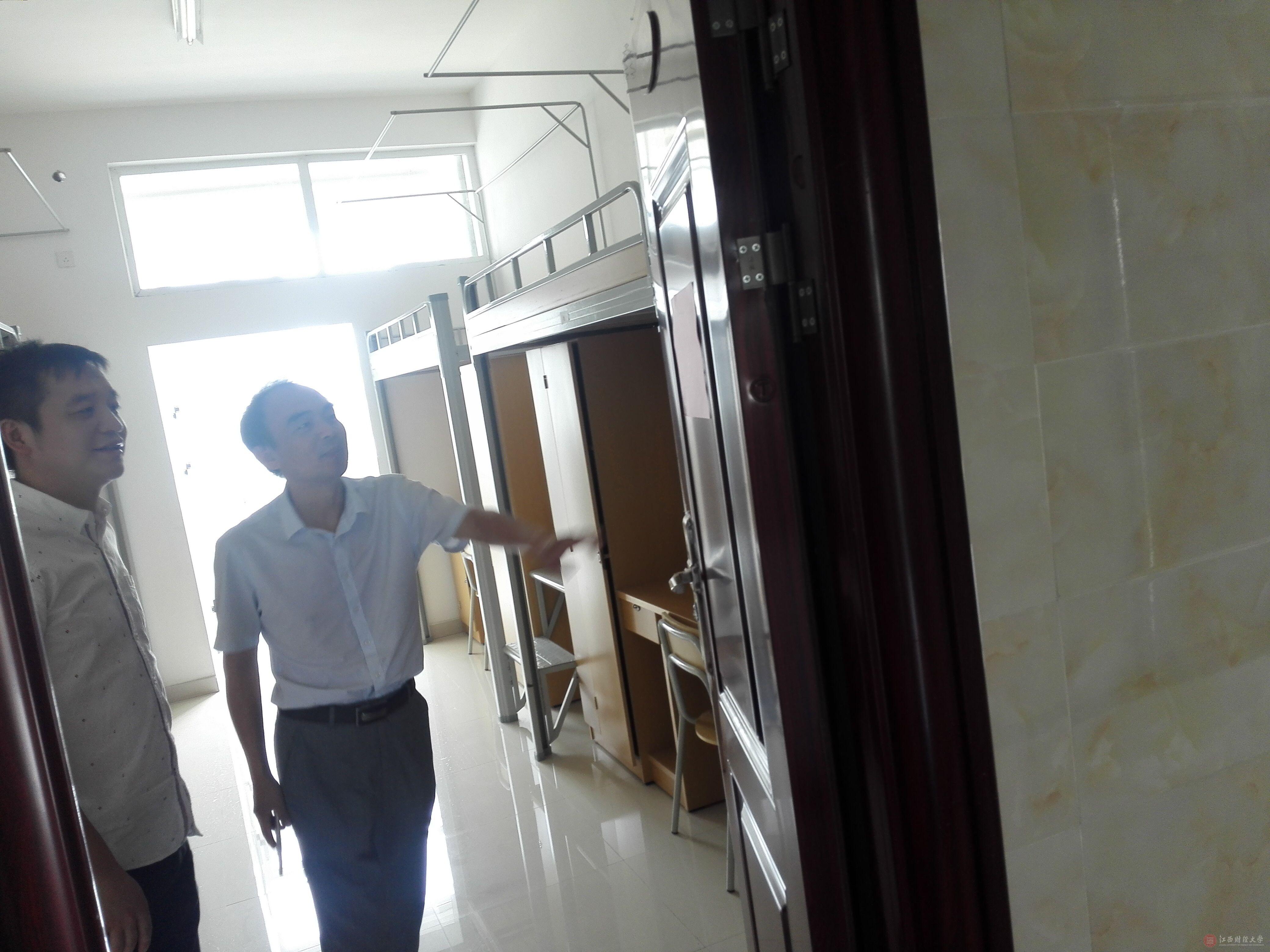 大学生宿舍是大学生生活与学习的重要场所,大学生在校期间,约有一半以上的时间是在学校度过的。好的宿舍环境对于大学生在校期间的氛围营造是十分重要的。在新生到来之前对新生宿舍进行走访,体现了学院领导对于新生生活方面的关心与照顾。对于宿舍的布局、卫生等物质文化的要求以及宿舍管理、安全隐患等问题,学院领导都与管理人员进行了深入的交流。叶书记在走访最后说道:“希望新生们能够珍惜这么好的环境,把这么好的宿舍环境当做是对自己极大的激励,激励自己向上,向好的方面发展。”