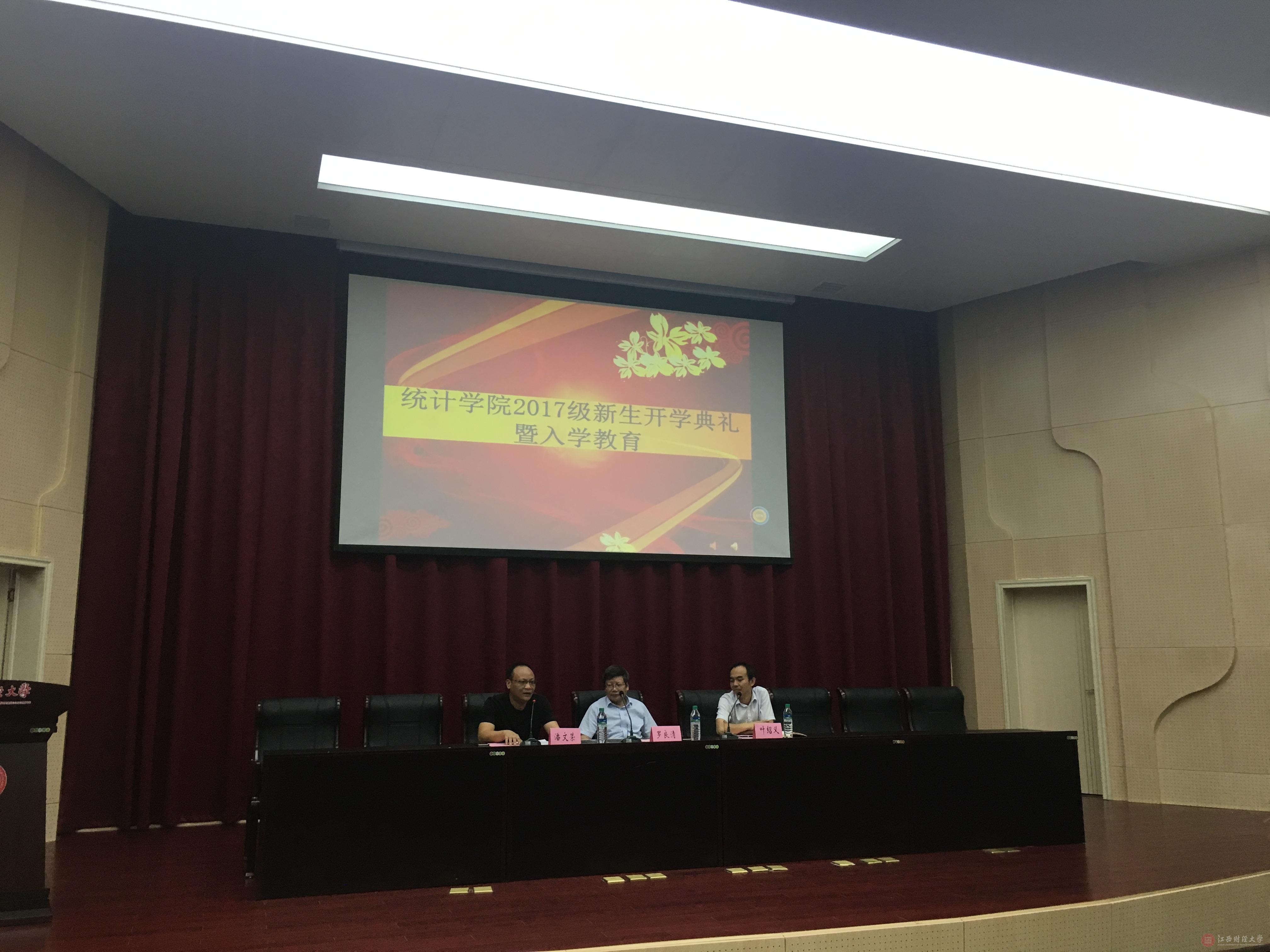 9月12日上午,统计学院在麦庐园北区第三教学楼报告厅举行了2017年院开学典礼。本学年开学典礼以“心中有梦,言有范,学有成”为主题,统计学院院长罗良清、党委书记叶绍义、副院长潘文荣出席并致辞,2017级各班班主任、助理班主任及新生参加此次典礼。