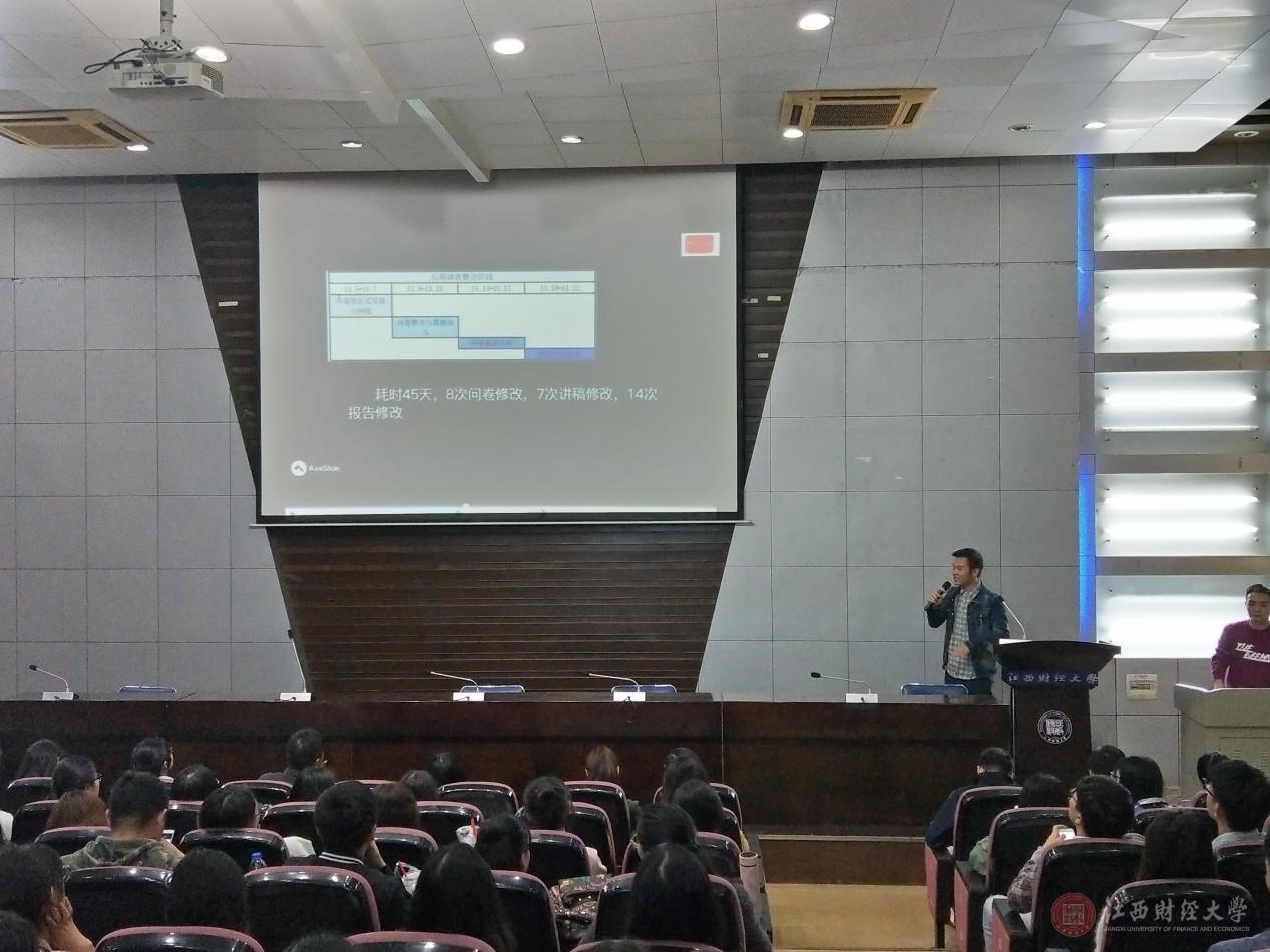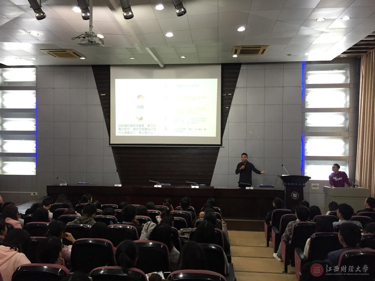 10月19日晚,江西省第五届“华创杯”市场调查分析大赛分享会在研究生楼105报告厅举行。此次分享会特别邀请了统计学院李燕辉老师,以及上一届获奖代表选手进行了学术交流和经验分享。各院系共300余名同学参加。
