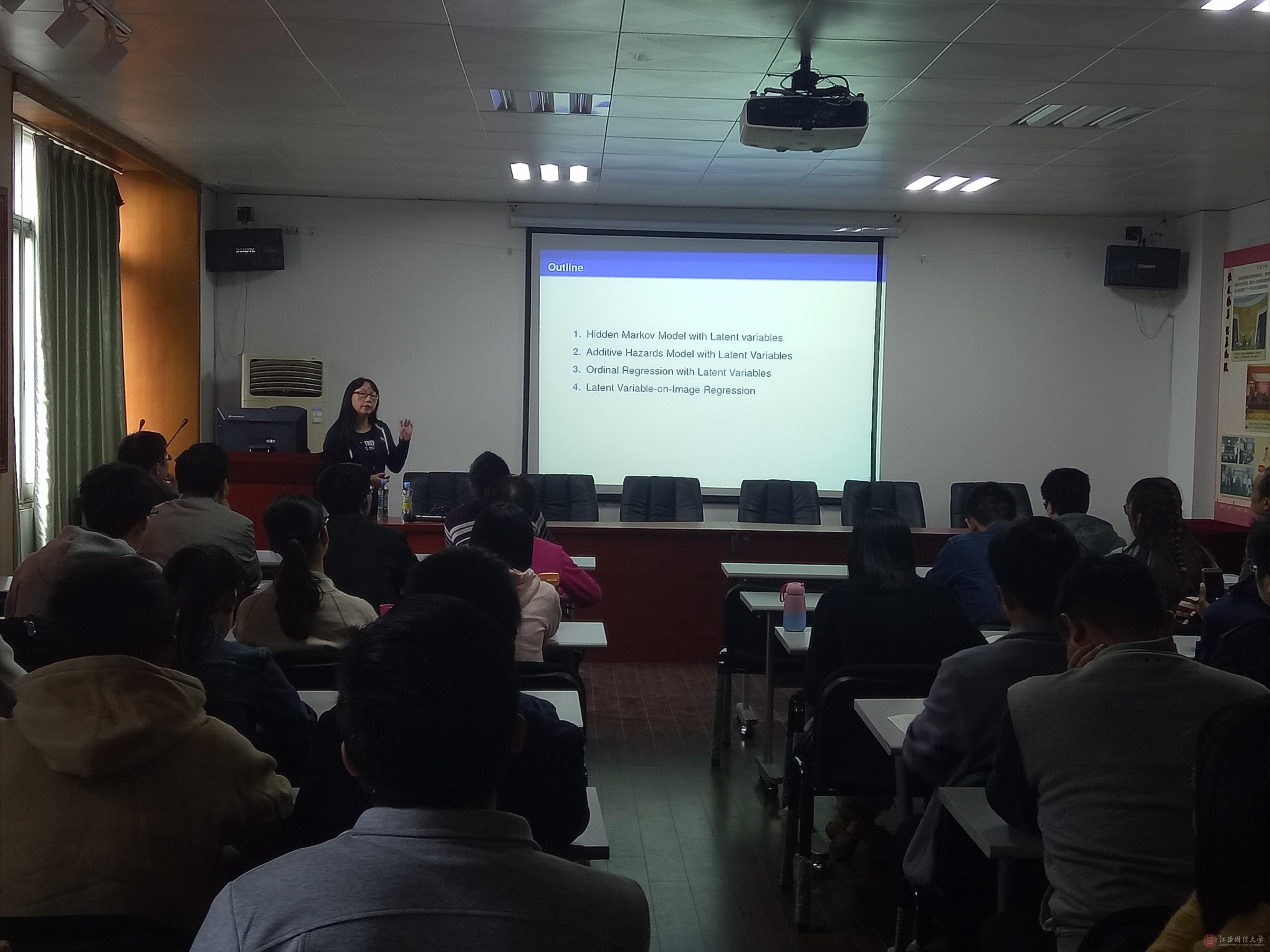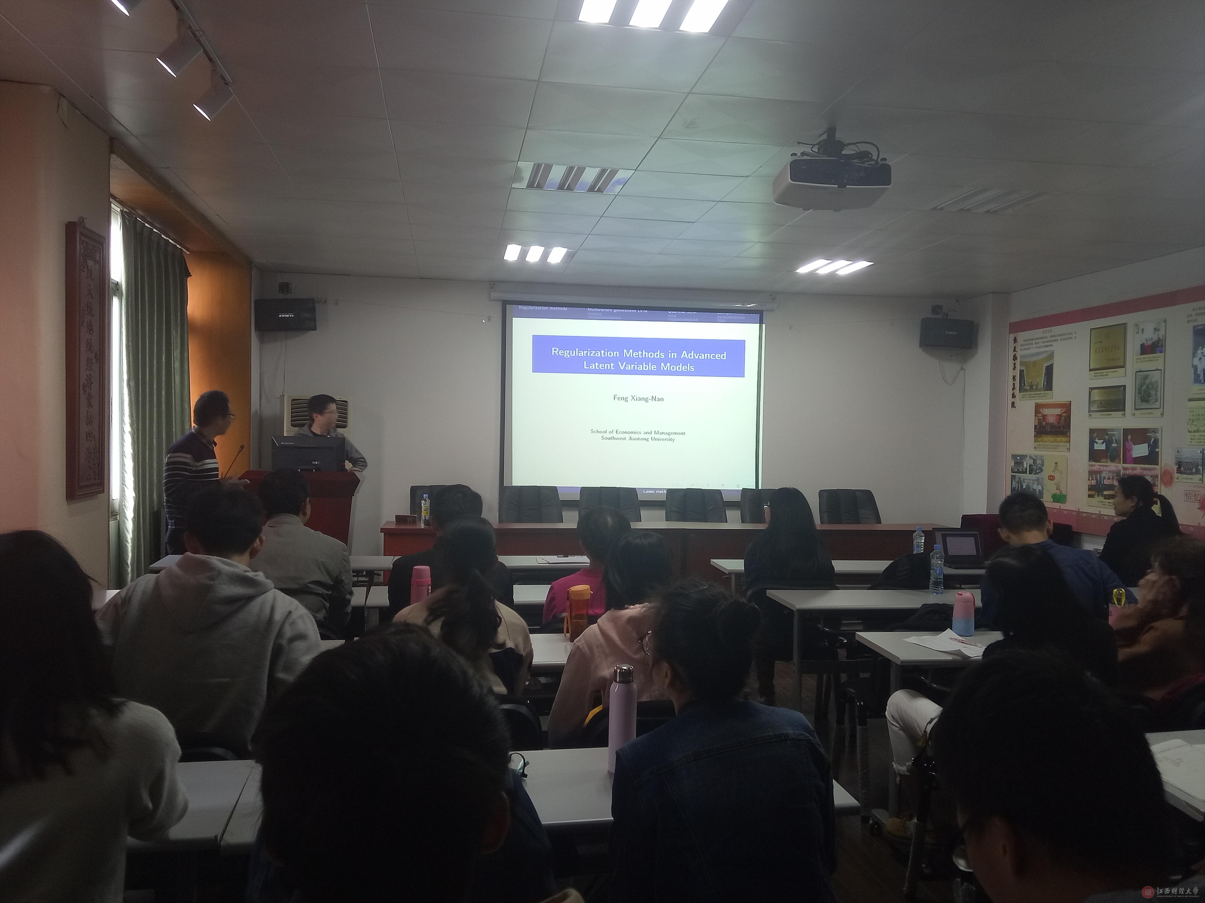 10月20日下午2点30分,香港中文大学宋心远教授、西南交通大学冯项楠老师受邀前往统计学院讲学,分别作了题为“A Joint Modeling Approach for Analyzing Complex Data with Latent Variables”和“Regularization Methods in Advanced Latent Variable Models”的专题讲座。讲座由统计学院副院长罗世华教授主持,统计学院部分教师以及研究生聆听了此次讲座。