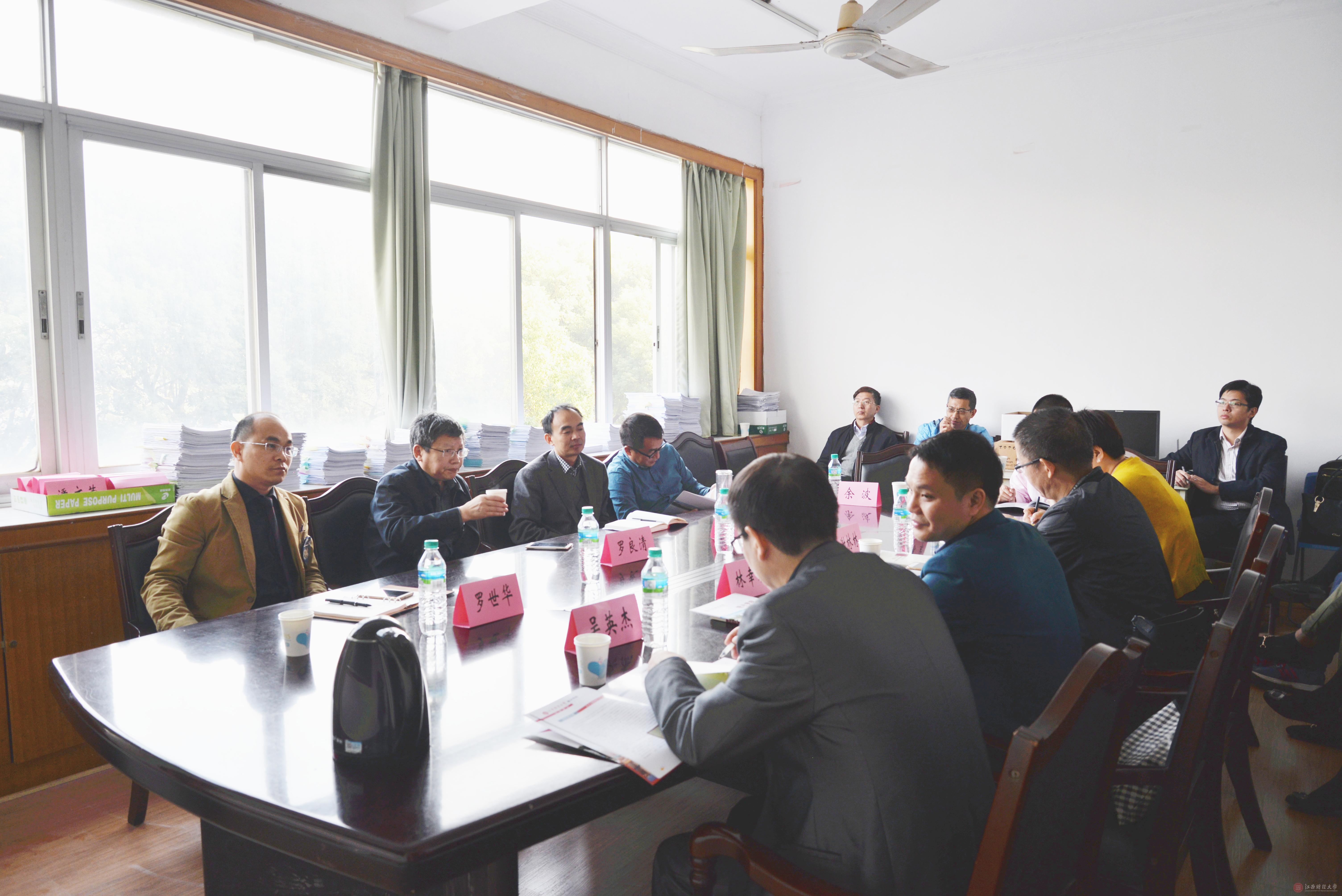 2017年11月2日上午,广东技术师范学院财经学院院长谢林林、党委副书记林幸福及其系科负责人16人一行人到访统计学院,就学科、专业建设、专业硕士培养、实验室建设等方面与我院领导老师进行了座谈。统计学院院长罗良请、党委书记叶绍义、副院长罗世华参加了座谈会,座谈会由罗良清院长主持。