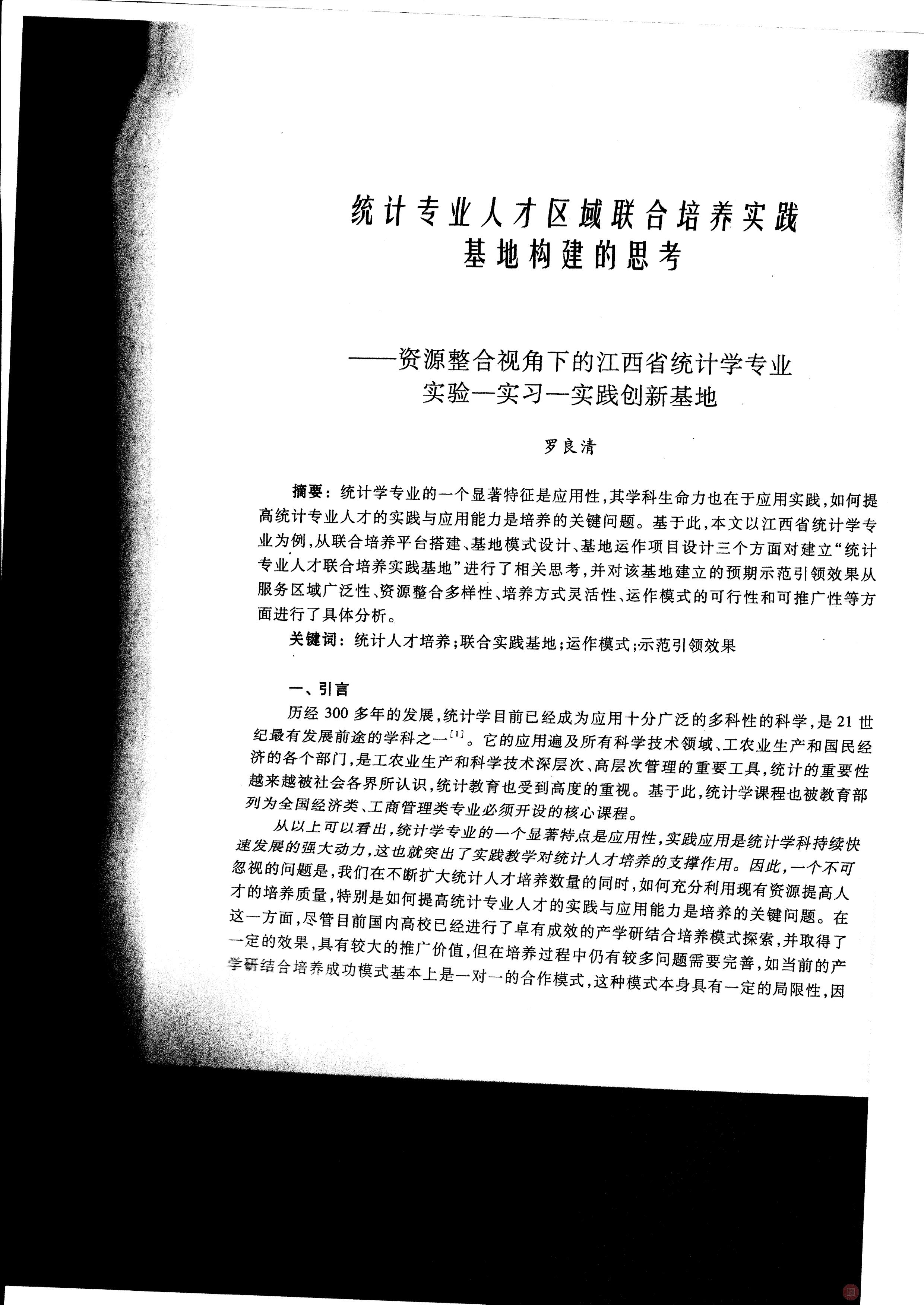 罗良清 统计专业人才区域联合培养实践基地构建的思考——资源整合视角下的江西省统计学专业实验-实习-实践创新基地