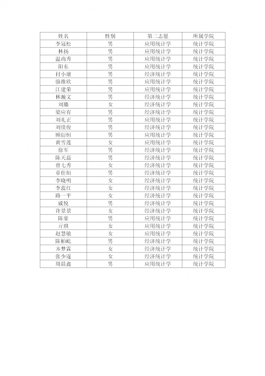 统计学院2020年第二学士学位招生初审通过名单(第一轮第二志愿调剂)