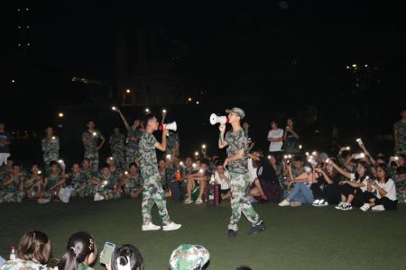 夜月楼台,秋香院宇。随着远处夜色降临,一场载歌载舞的晚会正式拉开了帷幕。翩若惊鸿眸映雪,夜月拂袖鹊惊绝。来自193班的李奕洁翩跹一舞,成功点燃了21级同学们参与的热情,大家也克服了初见的羞涩,勇敢踏出了坚定且自信的一步,纷纷粉墨登场,《穆桂英挂帅与清风亭》铿锵有力,《平凡之路》带动全场,《The Eve》热情奔放。异彩纷呈的豫剧表演,引人入胜的吉他弹唱,深入人心的惊艳舞姿,引得场上掌声阵阵,将气氛推至顶点。最后,21级的助班与下班党员一起,为大家献上合唱《夜空中最亮的星》,希望每一位统院新人都能如同“夜空中最亮的星”一般,闪亮整个青春,耀眼无限未来。