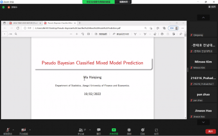 2月19日,统计学院与韩国全南国立大学自然科学院联合举办的统计研讨会,研讨会在线上分为上、下两场进行,上场由韩国全南国立大学Jaesik Jeong教授主持,下场则由我校统计学院副院长刘小惠教授主持,两校部分教师和研究生参加研讨会。
