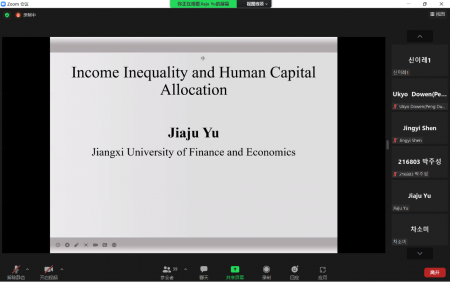 喻家驹老师在题为“Income Inequality and Human Capital Allocation”的报告中,介绍了如何将收入不平等分为部门间收入不平等和代际收入不平等、如何用人力资本错配程度来衡量人力资本配置等问题,并从优化人力资本配置和改善收入公平的角度提出一系列政策性建议。