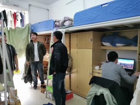 走访过程中,学院领导们与同学们进行了亲切交流,详细了解了同学们在疫情防控下的线上学习、饮食起居、宿舍安全、卫生情况、科研课题情况及校园学习生活的感受,叮嘱同学们要严格遵守疫情防控期间校园管理要求、做好疫情防控常态化下的自我管理和个人防护,养成良好的生活卫生习惯,同时也要注意身体健康,保持积极的心理状态,共同营造安全有序的校园环境。看到同学们在封校期间,仍保持学习上的进取,以及对生活的热情,陶春海表示,希望同学们继续保持积极向上态度,若是遇到学习和生活上的问题,可随时向老师寻求帮助,学院一定尽力为同学们解决。