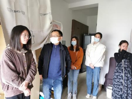 3月24日下午统计学院党委书记陶春海,党委副书记黄黑平,辅导员钟晴、庄园老师走访研究生和本科生学生宿舍,实地了解统计学院学生在疫情防控下的学习生活情况,并为学生送去关心和问候。