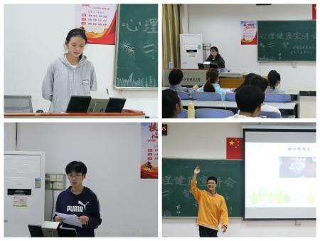 此次宣讲会由王子瑄、郑佳贝主持,张恒、吴致洁等八位同学依次上台进行宣讲。八位同学通过PPT演示等形式向评委和观众介绍了当前大学生常见的心理问题,其主要体现在学业繁忙、时间安排不当带来的焦虑感以及人际关系处理难题等。讲解完常见的心理问题后,他们就这些问题与观众进行互动探讨,倡导同学们要学会正视自身情绪和主动接受负面情绪,并建议他们通过娱乐消遣、与朋友倾诉、运动健身等方法宣泄不良情绪。