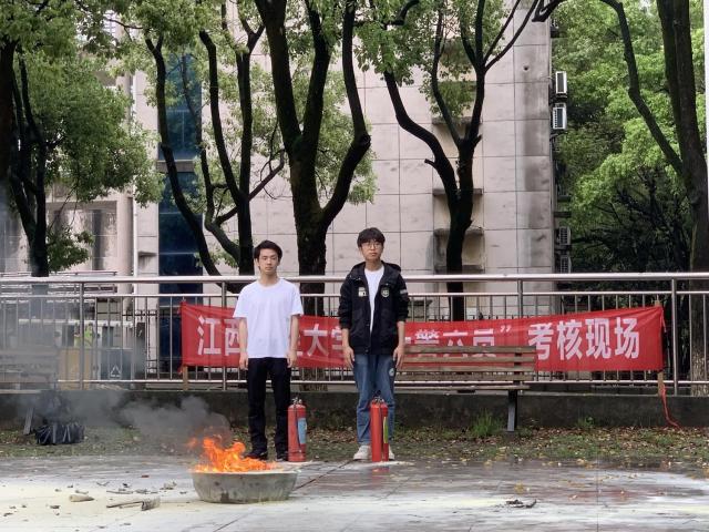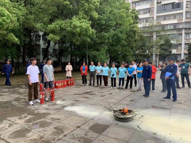 为进一步加强师生的安全意识和应急疏散能力,掌握对突发火灾的应变和逃生技能,学会灭火器材的使用,确保生命及财产安全,4月19日,经开区白水湖消防专职队副队胡安中,队员陈冲、周龙庆、胡从等受邀来到蛟桥园北区留学生公寓南侧广场,组织四十余名统计学院学子开展了“一警六员”消防演练。