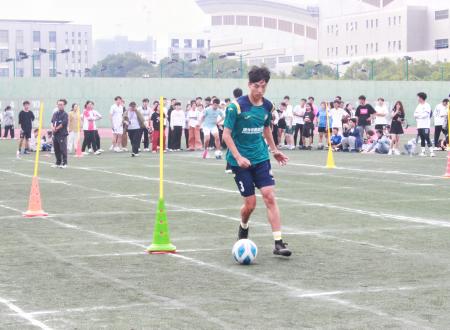 随着一声哨响,足球带球绕杆选手们如在弦之箭,用敏捷的腿法将足球以“s”形绕过数个长杆,转身、踢球、交接,到最后一名选手以一个漂亮的射门收尾,整个过程一气呵成。最终,统院健儿们荣获足球带球绕杆第八名,踢出了统院的力量与风采。
