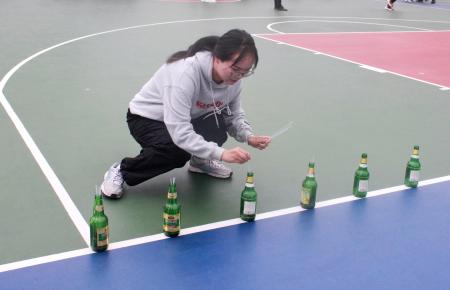 插秧比赛规则如名,参赛者们需要一个接一个地将自己手中的棒子准确地插入一个个玻璃瓶中,弯腰比赛时的动作正如插秧的情景。比赛时,学院的教工们面带笑容,挥洒汗水,凭借完美的配合和熟练的技巧,摘取了比赛的桂冠。