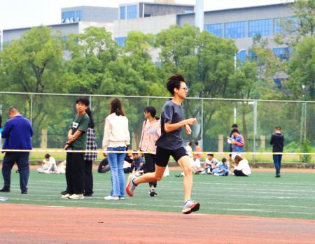 随着裁判的一声哨响,统计学子迈着矫健而平稳的步伐,踏上属于他们的征途。运动员们注视着的是前方的跑道;听到的是耳边呼啸的风声与远处热烈的应援;感受到的是脸颊上流淌不止的汗水。而于此拼搏之中,脚下跑过的路程越远,他们心中的意志也便越坚定,脚步也愈发有力。