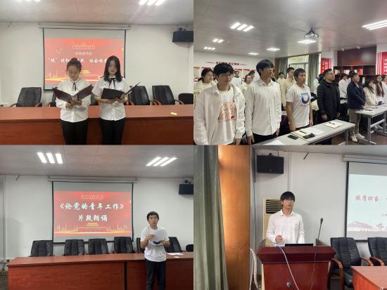此次活动围绕《论党的青年工作》这部红色经典展开,分为“悦读经典,读善其身”、“红心向党,永葆初心”、“先锋模范,催人奋进”三个环节。在这三个环节中,读书会开展如经典片段朗诵,党史相关知识作答,聆听红色歌曲等多种方式,使同学们深入学习红色文化,感悟红色精神。在“红心向党,永葆初心”环节,团委学生会第一副书记带来《团员与青年主题教育:挺膺担当》主题微团课。通过此次微团课的开展,在场学生们深刻体会到新时代新青年的责任和使命。