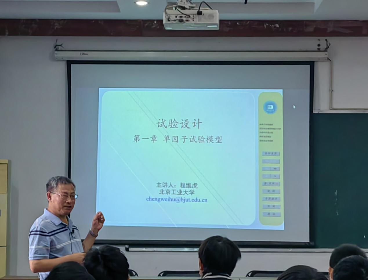 4月25日上午,程教授从试验设计中的单因子试验模型这一角度引入,分四个方面阐述授课内容。首先,程教授通过5个典型案例为大家介绍了试验设计的研究对象以及解决试验问题的三个阶段。接下来,他指出试验设计中的两个基本手段为“重复”和“随机化”,并对其概念进行了详细的阐述。随后,程教授进一步指出解决试验问题主要分为问题的叙述、试验计的设计与实施以及实验结果的统计分析这三个步骤,而这三个步骤相互关联、相辅相成,构成了解决试验问题的完整框架。程教授强调,在实际应用中,同学们需要根据具体问题灵活调整和优化这些步骤,以确保试验设计的有效性和实用性。最后,他就多因子试验模型以及正交实验设计与分析的课程内容为同学们进行了详细的解读。