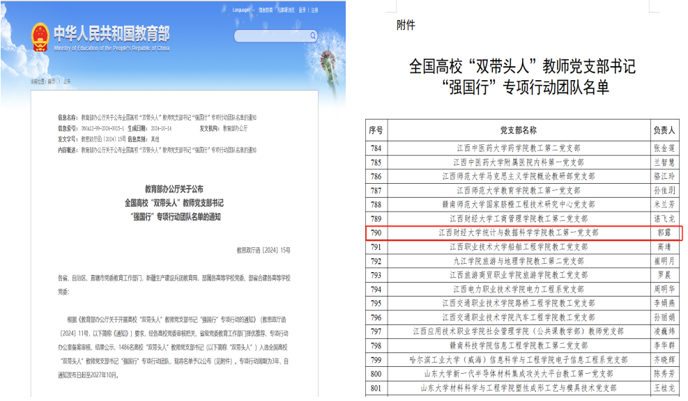 近日,教育部公布了全国高校“双带头人”教师党支部书记“强国行”专项行动团队入选名单,我院教工第一党支部成功入选。