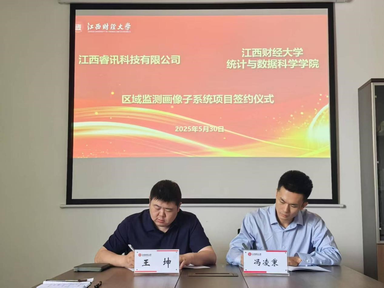 5月30日,江西省防止返贫监测帮扶系统区域监测画像子系统项目签约仪式在我院圆满举行。江西省帮扶开发监测评估中心主任谢昌仁、副主任吴昌强、监测评估科科长王显光,江西睿讯科技有限公司总经理王鹏、副总经理王坤,统计与数据科学学院党委书记陶春海、国势研究院副院长冯凌秉、博士生黄斐及项目核心成员共同出席此次签约仪式。