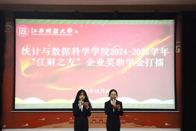 10月10日下午,统计与数据科学学院2024-2025学年“江财之友”企业奖助学金打擂活动在江西财经大学蛟桥园北区学术报告厅顺利举行,学院党委副书记陈曦,学工办主任钟晴,团委副书记林阳,团委辅导员龚文林、张紫悦作为评委出席,部分学生代表共同参与此次活动。
