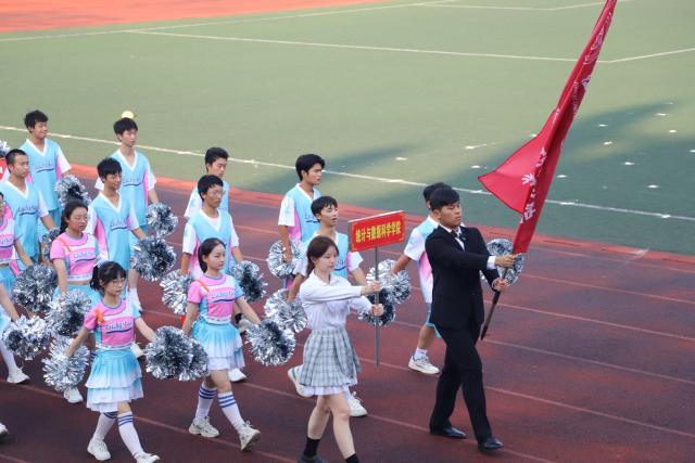 方队展示落幕后,团体操表演比赛随即开场。当音乐奏响,同学们的动作如同被无形的丝线牵引,抬手时像整片草坪绽放出彩色浪花,俯身时又凝成向前冲刺的箭头剪影。脚步声与音乐共振,队形在欢呼声中变换,把少年人的朝气与集体的向心力,融进了洒满阳光的运动场上。