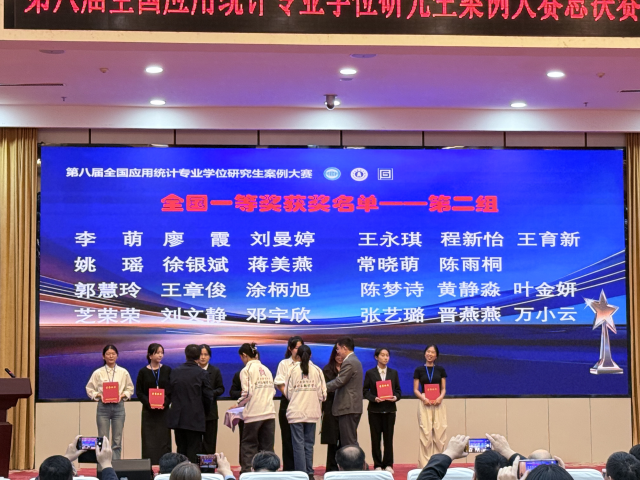近日,由全国应用统计专业学位研究生教育指导委员会(MAS)联合全国工业统计学教学研究会、中国统计教育学会高等教育分会举办的“2025第八届全国应用统计专业学位研究生(MAS)案例大赛”顺利落下帷幕。经过大赛组织委员会的遴选,我校统计与数据科学学院共有6支研究生队伍获得国家级奖项,其中2支队伍入围国赛答辩获得国家一等奖,4支队伍获得国家三等奖;6支研究生队伍获得华东赛区奖项。
