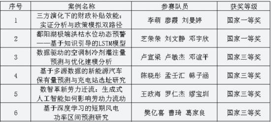由张华老师指导,李萌、廖霞、刘曼婷团队创作的《三方演化下的财政补贴效能:实证分析与政策模拟双路径》,以及由刘庆老师指导,芝荣荣、刘文静、邓宇欣团队创作的《鄱阳湖极端洪枯水位动态预警——基于知识引导的LSTM模型》,均荣获全国一等奖。