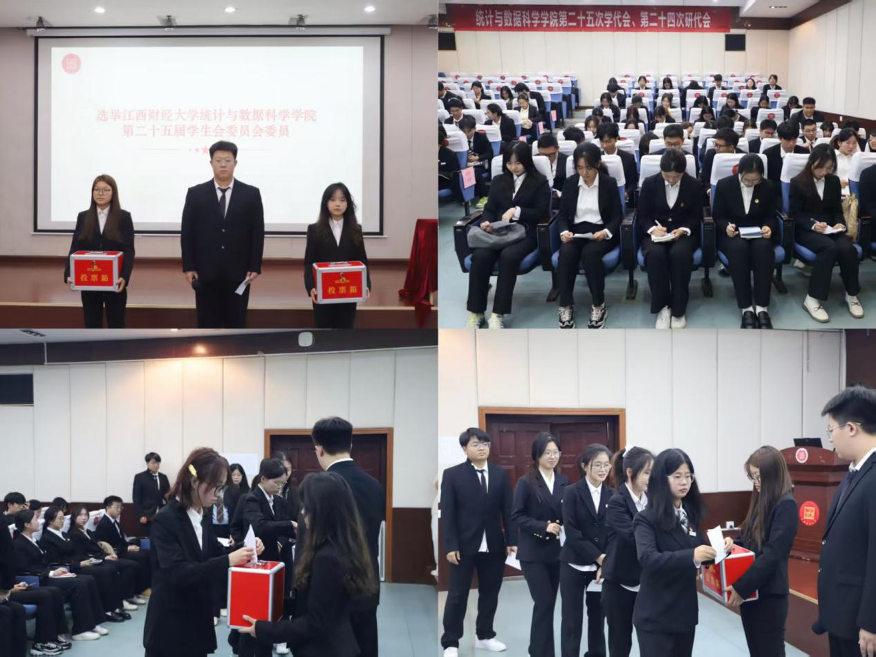 与会代表在监、计票人的协助与监督下,选举出江西财经大学统计与数据科学学院第二十五届学生委员会委员、第二十四届研究生委员会委员;统计与数据科学学院第二十五届常任代表委员会委员及主任、统计与数据科学学院第二十五届学生会主席团成员、统计与数据科学学院第二十四届研究生会主席团成员;出席江西财经大学第二十五次学生代表大会代表、出席江西财经大学第二十四次研究生代表大会代表。