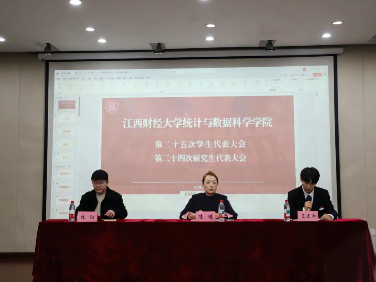 10月26日下午,江西财经大学统计与数据科学学院第二十五次学生代表大会、第二十四次研究生代表大会召开,院党委副书记陈曦、院团委副书记林阳出席会议。