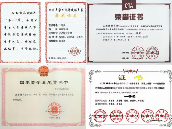 “师者如灯,指引方向;友者如伴,共克难关。”涂雪婷不仅在专业课程上成绩优异,在科研竞赛中也屡获佳绩。老师是她科研道路上的引路人,引领她踏入科研领域,探索并解决各类问题;队友是她竞赛道路上的同行者,给予她迎战各种挑战的勇气,与她携手共破难关。涂雪婷在正大杯、全国大学生统计建模大赛中取得的优异成绩,得益于团队的明确分工与默契配合。面对竞赛准备过程中的难题,涂雪婷会选择积攒问题并向老师请教,同时广泛阅读文献,从中寻找解决方案,不断提升自身解决问题的能力。谈及此过程中的最大收获与成长,涂雪婷表示,她不仅提升了统计建模和查找、阅读论文的技能,丰富了解决问题的经验,更收获了珍贵的友情。