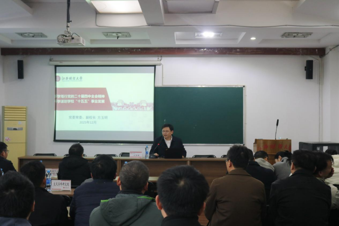 方玉明在宣讲中详细阐述了党的二十届四中全会的重大意义,系统回顾了“十四五”时期我国经济社会发展取得的显著成就,深入分析了“十五五”时期面临的国内外形势,并对“十五五”时期经济社会发展的战略定位、重要原则、主要目标、重点任务与关键举措等一系列新思想、新论断作了详细解读。方玉明强调,我们要深刻领悟党的二十届四中全会精神,深刻理解教育、科技、人才“三位一体”统筹推进的战略部署,准确把握中国式现代化对高等教育提出的新要求,“双一流”建设必须紧扣“服务国家战略需求”这一核心,主动将学校发展融入国家战略布局,切实增强政治自觉、思想自觉和行动自觉,推动学校教育事业发展上新的台阶。