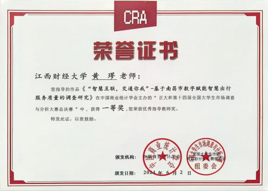 统计学作为一门兼具理论深度与实践价值的学科,既要求扎实的知识积淀,更强调创新思维的突破。这一点,在黄璆的教学实践中得到了生动诠释。她始终坚信,统计学教学的核心不仅在于知识的传授,更在于能力的培育 —— 既要点燃学生对新兴前沿领域的探索好奇心,也要锤炼他们将理论知识落地实践的应用能力,更要塑造他们把握时代热点与国家战略导向的敏锐度。在教学过程中,黄璆积极搭建 “学赛结合” 的桥梁,将课堂培育的核心能力转化为竞赛的内在动力,让每一份竞赛作品都兼具 “落地性” 与 “实用性”,真正实现以赛促学、以赛促练。