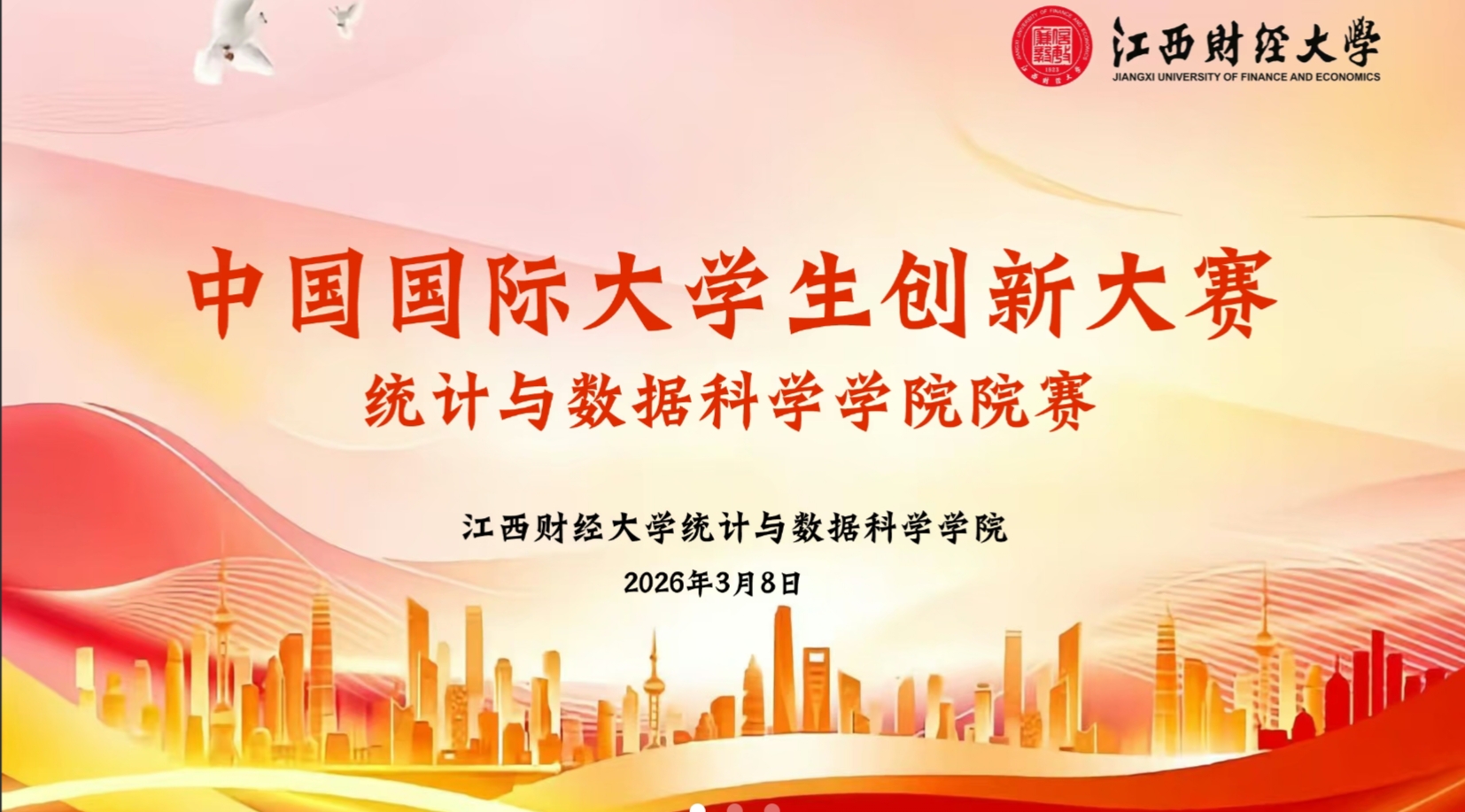 3月8日下午,统计与数据科学学院中国国际大学生创新大赛院赛通过腾讯会议线上举行。本次院赛在学院党委统筹指导下,由院团委牵头组织,各年级广泛动员、精心部署,全院学生积极响应,共有18支队伍报名参赛。