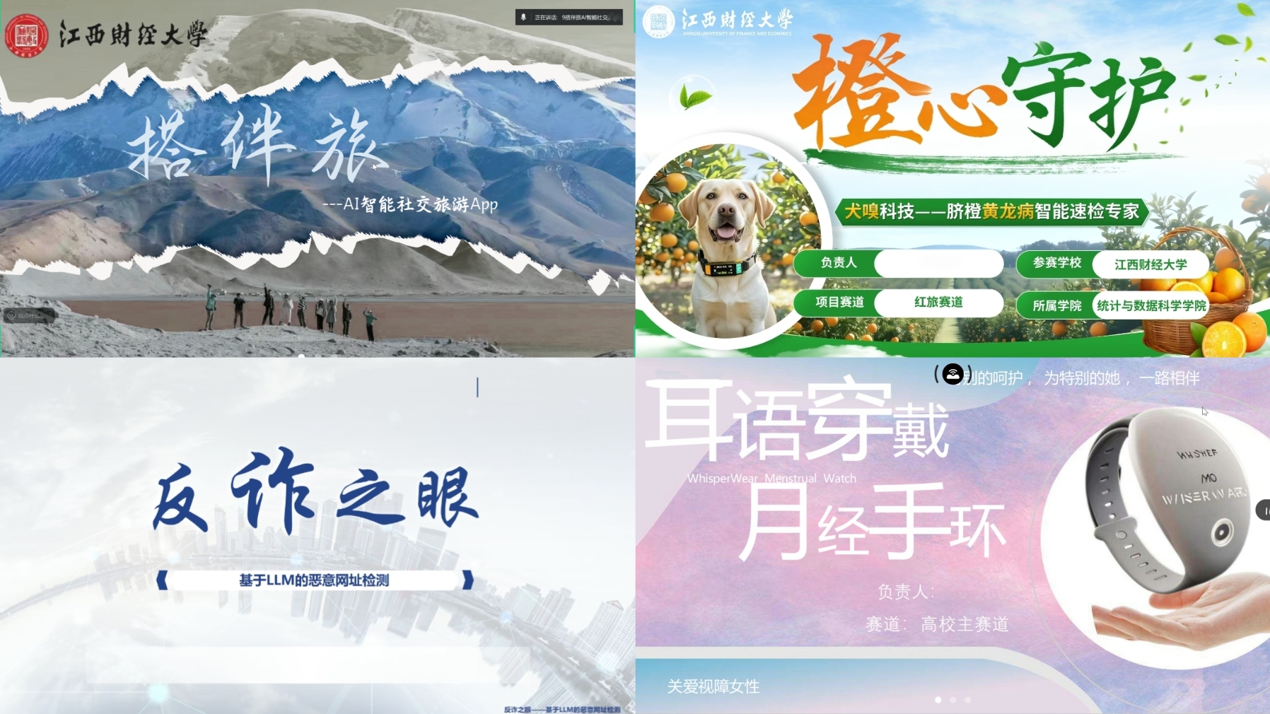 各参赛团队按抽签顺序依次进行线上PPT展示,围绕项目背景、核心创新、应用前景等方面展开陈述,充分展现了统院学子别出心裁的巧思与扎实实力。评委组参照大赛评审标准,从个人成长、项目创新、产业价值、团队表现及社会价值等维度对项目进行综合打分。经过严格评审,最终共有15个项目脱颖而出,被推荐至校级复赛。