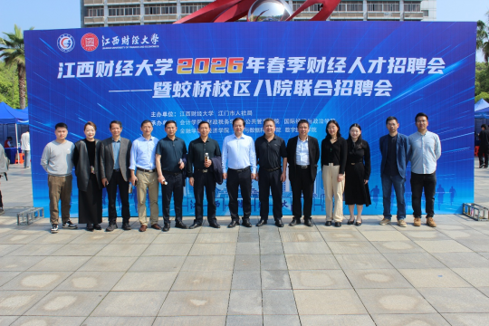 4月18日上午,由江西财经大学、江门市人社局主办,会计学院、财政税务学院、公共管理学院、国际经济与政治学院、金融学院、经济学院、统计与数据科学学院、数字经济学院联合承办的2026年春季财经人才招聘会暨蛟桥校区八院联合招聘会顺利举办,相关领导老师出席此次活动,与参会企业代表和求职学生展开交流。
